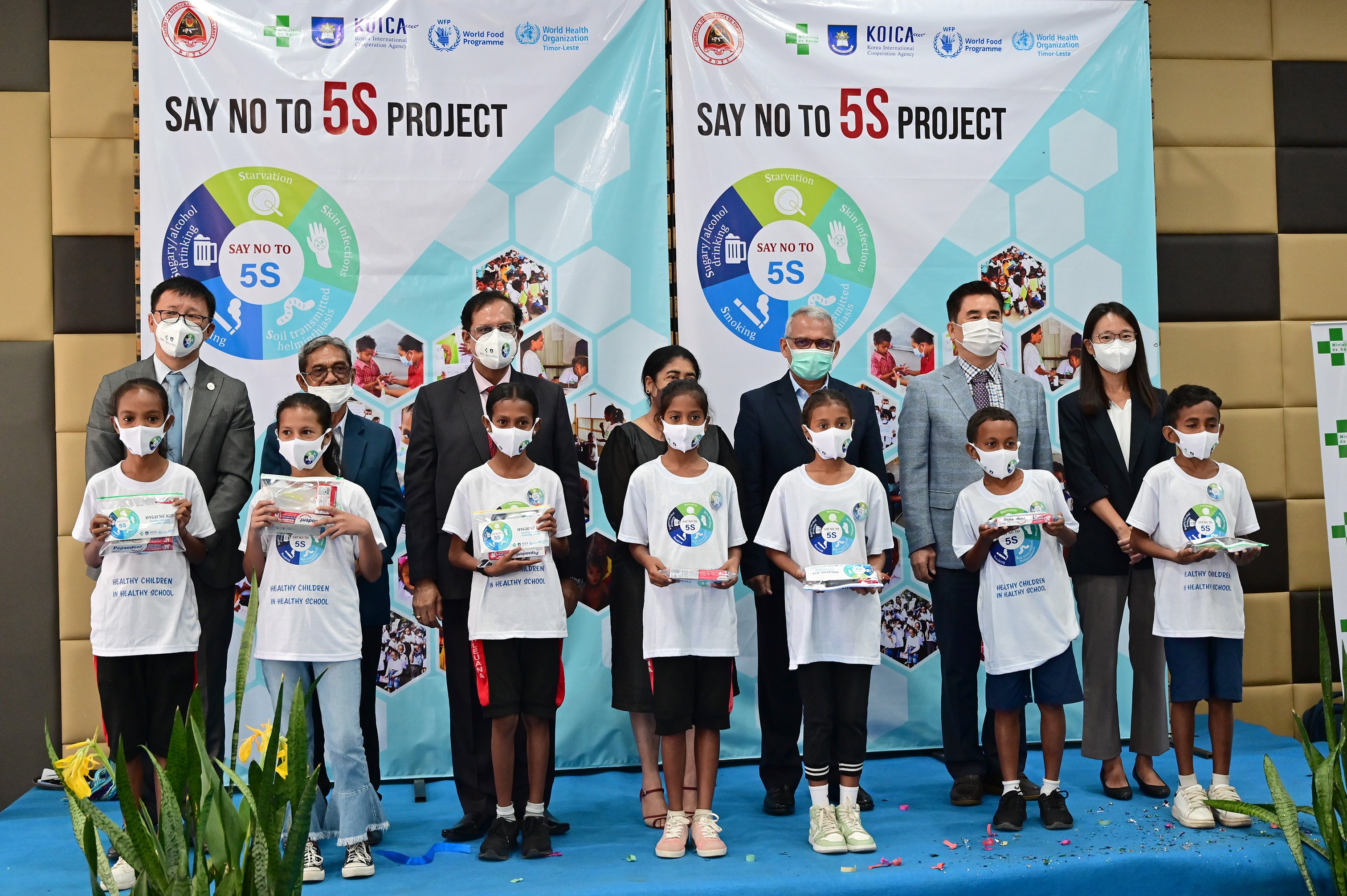 To put focus on the health and nutrition of the children, the World Health Organization, along with the Ministry of Health and Ministry of Education, Youth and Sports and the WFP in Timor-Leste launched the Say No To 5S project targeting Starvation, Soil-Transmitted Helminthiasis, Skin Diseases, Smoking & Sugary/Alcoholic Drinks on 8 March 2022. The Korea International Cooperation Agency (KOICA) has provided a generous donation of US$ 7.8 million for the project that will go on till 2025.